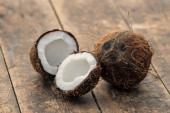 Zdjęcie "Dojrzała dziura i pół pokrojony kokos na starym drewnianym tle. Krem kokosowy i olej kokosowy." może być wykorzystywane do celów osobistych i komercyjnych zgodnie z warunkami zakupionej licencji Royalty-free. Obraz jest dostępny do pobrania w jakości wysokiej rozdzielczości do 5760x3840.