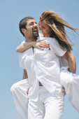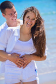 szczęśliwa młoda para baw się na plaży