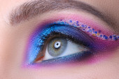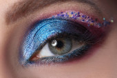 niebieski oko makro zbliżenie makijaż kolorowe cekiny