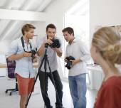 Zdjęcie "Fotograf fotografowania model w studio" może być wykorzystywane do celów osobistych i komercyjnych zgodnie z warunkami zakupionej licencji Royalty-free. Obraz jest dostępny do pobrania w jakości wysokiej rozdzielczości do 5760x3840.
