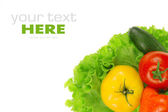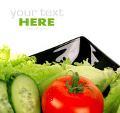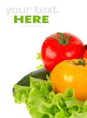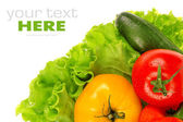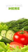 pomidory, sałatka, ogórki, sałatka z liści na białym tle