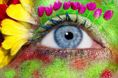 kobieta oczu makijaż wiosna kwiaty metafora niebieski