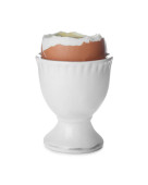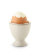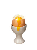 Kielich ze świeżym jajem gotowanym na miękko izolowanym białym
