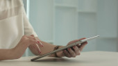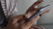 Zdjęcie "Dziewczyna trzyma smartfona zakupy online. Ręce dotykać gadżet w domu zbliżenie. Nieznany użytkownik aplikacji przewijanie wiadomości przekazu mediów społecznościowych spoczywających na kanapie. Kobieta sprawdza maile rano. Weekendowy czas wolny" może być wykorzystywane do celów osobistych i komercyjnych zgodnie z warunkami zakupionej licencji Royalty-free. Obraz jest dostępny do pobrania w jakości wysokiej rozdzielczości do 5760x3840.