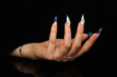 Zdjęcie "piękne dłonie z Francuski manicure na czarnym tle" może być wykorzystywane do celów osobistych i komercyjnych zgodnie z warunkami zakupionej licencji Royalty-free. Obraz jest dostępny do pobrania w jakości wysokiej rozdzielczości do 5760x3840.