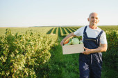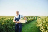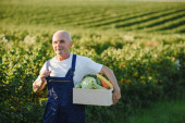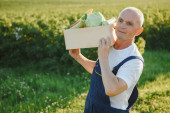 mężczyzna rolnik gospodarstwa pole z warzywami w polu.