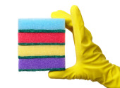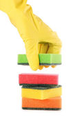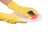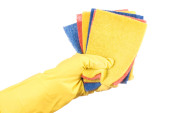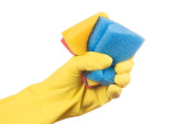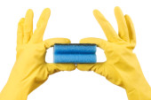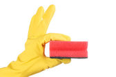 dłoń w rękawicy na białym tle nad białym