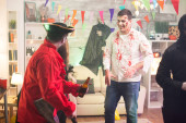 Zdjęcie "Bezmyślne zombie jedzące mózgi pracujące na laptopie i uśmiechające się przerażające przed kamerą. Niebezpieczne martwe mózgi potwór z głębokimi i krwawymi bliznami próbuje korzystać z komputera, ale zawodzi wielki czas." może być wykorzystywane do celów osobistych i komercyjnych zgodnie z warunkami zakupionej licencji Royalty-free. Obraz jest dostępny do pobrania w jakości wysokiej rozdzielczości do 5760x3840.