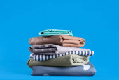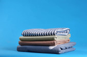 Zdjęcie "Kobieta składane ubrania przy drewnianym stole w pomieszczeniach, zbliżenie" może być wykorzystywane do celów osobistych i komercyjnych zgodnie z warunkami zakupionej licencji Royalty-free. Obraz jest dostępny do pobrania w jakości wysokiej rozdzielczości do 5760x3840.
