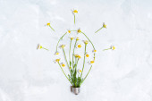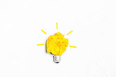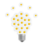 Symbol żarówki wykonany z dużej stokrotki odizolowanej na żółto. Świetny pomysł na zrównoważony styl życia.