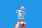 Zdjęcie "Symbol żarówki wykonany z dużej stokrotki odizolowanej na żółto. Świetny pomysł na zrównoważony styl życia." może być wykorzystywane do celów osobistych i komercyjnych zgodnie z warunkami zakupionej licencji Royalty-free. Obraz jest dostępny do pobrania w jakości wysokiej rozdzielczości do 5760x3840.
