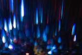 Nieostre świecenie. Neonowy rozbłysk światła. Futurystyczne oświetlenie. Blur LED granatowy zielony różowy kolor linie oślepiający pył zarysowania na abstrakcyjnym tle.