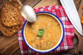 Tradycyjnej kuchni rosyjskiej - żółty groch puree lub Kasza z warzywami