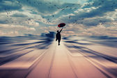 Kobieta stojąc na skałach oglądając zachód słońca morze, dramatyczny widok, kobieta na krawędzi, sylwetka kobieta niezwykła, koncepcja z zewnątrz