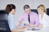 Młoda para klientów i doradcy lub agenta mówisz dyplomat