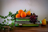 Mennica w szkło wazon, cytryny i mini Sztaluga z pustym płótnie