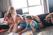 Zdjęcie "Szczęśliwe młode rodziny w domu z komputera typu tablet" może być wykorzystywane do celów osobistych i komercyjnych zgodnie z warunkami zakupionej licencji Royalty-free. Obraz jest dostępny do pobrania w jakości wysokiej rozdzielczości do 5760x3840.