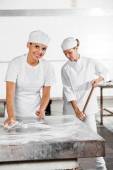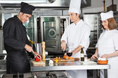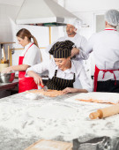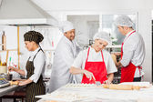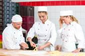 Szef kuchni cięcia pierożków ravioli licznik w kuchni