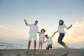 szczęśliwa młoda rodzina baw się dobrze na plaży