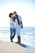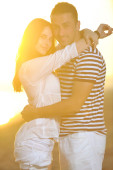 szczęśliwy młody para mieć romantyczny czas na plaży