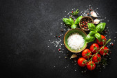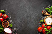 Zdjęcie "Świeże zioła i warzywa na czarno. Składniki do gotowania z przestrzenią do kopiowania." może być wykorzystywane do celów osobistych i komercyjnych zgodnie z warunkami zakupionej licencji Royalty-free. Obraz jest dostępny do pobrania w jakości wysokiej rozdzielczości do 5760x3840.