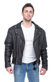 Zdjęcie "pełnej długości człowieka w skórzaną kurtkę." może być wykorzystywane do celów osobistych i komercyjnych zgodnie z warunkami zakupionej licencji Royalty-free. Obraz jest dostępny do pobrania w jakości wysokiej rozdzielczości do 5760x3840.