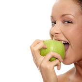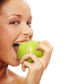 kobieta z zielonym jabłkiem