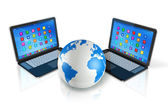 świata, mapę na laptopie