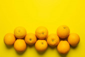 Widok z góry słodkich pomarańczy na żółtym tle z przestrzenią do kopiowania, baner