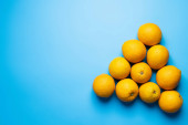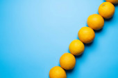 Płaskie ułożenie pomarańczy w formie kwadratu na żółtym tle