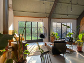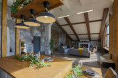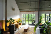 Modne eklektyczne wnętrze Boho z zabytkowymi meblami. Wysokiej jakości zdjęcie