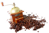 Tradycyjne ręczne drewniane Młynki do kawy na białym tle