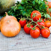 Świeże warzywa jesienne leżą na stole, drewniane