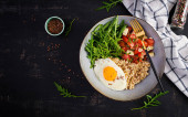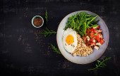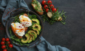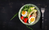 Zdjęcie "Kanapki z łososiem, jajkami i awokado. Keto, ketogenne śniadanie dietetyczne lub lunch. Widok z góry, baner" może być wykorzystywane do celów osobistych i komercyjnych zgodnie z warunkami zakupionej licencji Royalty-free. Obraz jest dostępny do pobrania w jakości wysokiej rozdzielczości do 5760x3840.