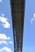 Zdjęcie "Most kolejowy Truss - widok z boku" może być wykorzystywane do celów osobistych i komercyjnych zgodnie z warunkami zakupionej licencji Royalty-free. Obraz jest dostępny do pobrania w jakości wysokiej rozdzielczości do 5760x3840.