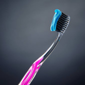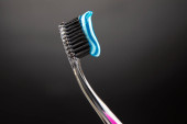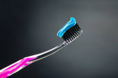 szczoteczka do czyszczenia zębów na ciemnym tle. artykuły zdrowotne