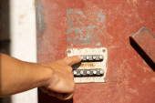 Zdjęcie "Foreman lub pracownik uruchamiający alarm przeciwpożarowy na ścianie. Pożar! lub przypadek awaryjny w budynku fabrycznym. Urządzenia alarmowe przeciwpożarowe, alarmowe lub ostrzegawcze" może być wykorzystywane do celów osobistych i komercyjnych zgodnie z warunkami zakupionej licencji Royalty-free. Obraz jest dostępny do pobrania w jakości wysokiej rozdzielczości do 5760x3840.