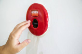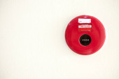 Alarm pożarowy na ścianie. Urządzenia alarmowe przeciwpożarowe, alarmowe lub ostrzegawcze