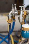Zdjęcie "Zawory azotu, helu, zbiornika tlenu i miernika ciśnienia gazu z regulatorem. Zbiornik gazu." może być wykorzystywane do celów osobistych i komercyjnych zgodnie z warunkami zakupionej licencji Royalty-free. Obraz jest dostępny do pobrania w jakości wysokiej rozdzielczości do 5760x3840.