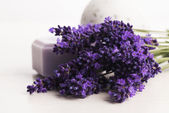 Olej ziołowy i kwiaty lawendy martwa natura na drewnianym tle