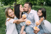 Zdjęcie "Skup się na pysznym torcie z numerem 6. Portret szczęśliwej rodziny, mama, tata i dziewczynka świętują sześć miesięcy od narodzin dziecka, siedząc w bagażniku samochodu na tle zielonego pola." może być wykorzystywane do celów osobistych i komercyjnych zgodnie z warunkami zakupionej licencji Royalty-free. Obraz jest dostępny do pobrania w jakości wysokiej rozdzielczości do 5760x3840.