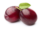 czerwone śliwki na białym tle