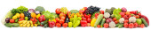Szeroki poziomy bezszwowy wzór z przydatnych warzyw i owoców odizolowanych na białym tle