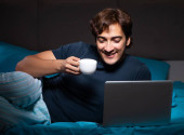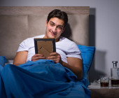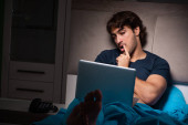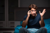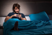 Zdjęcie "Młody mężczyzna pisze na komórce późno w nocy." może być wykorzystywane do celów osobistych i komercyjnych zgodnie z warunkami zakupionej licencji Royalty-free. Obraz jest dostępny do pobrania w jakości wysokiej rozdzielczości do 5760x3840.