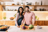 Zdjęcie "Szczęśliwy dorosła kobieta za pomocą cięcia warzyw w kuchni w domu i uśmiech." może być wykorzystywane do celów osobistych i komercyjnych zgodnie z warunkami zakupionej licencji Royalty-free. Obraz jest dostępny do pobrania w jakości wysokiej rozdzielczości do 5760x3840.