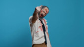 Zdjęcie "Dumb creepy looking zombies with modern laptop device and clipboard acting childish on blue background. Sinister looking brain-eating monsters with deep scars and wounds working on portable computer." może być wykorzystywane do celów osobistych i komercyjnych zgodnie z warunkami zakupionej licencji Royalty-free. Obraz jest dostępny do pobrania w jakości wysokiej rozdzielczości do 5760x3840.