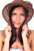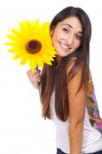 piękna młoda kobieta uśmiechając się ze słonecznikiem