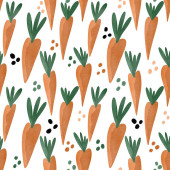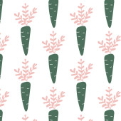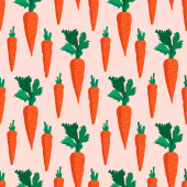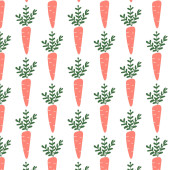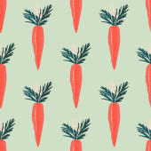 Marchew z wierzchołkami na jasnozielonym tle. Płynny wzór z warzywami.