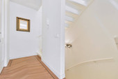 Zdjęcie "Retro szafka z dekoracjami i lustrem znajduje się w pobliżu schodów i drzwi do salonu w korytarzu domu" może być wykorzystywane do celów osobistych i komercyjnych zgodnie z warunkami zakupionej licencji Royalty-free. Obraz jest dostępny do pobrania w jakości wysokiej rozdzielczości do 5760x3840.
