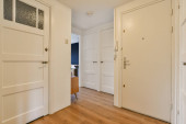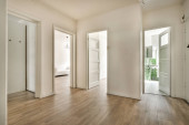 Od góry wąskie schody spiralne z białymi schodami i poręczy na ścianie wewnątrz nowoczesnego mieszkania